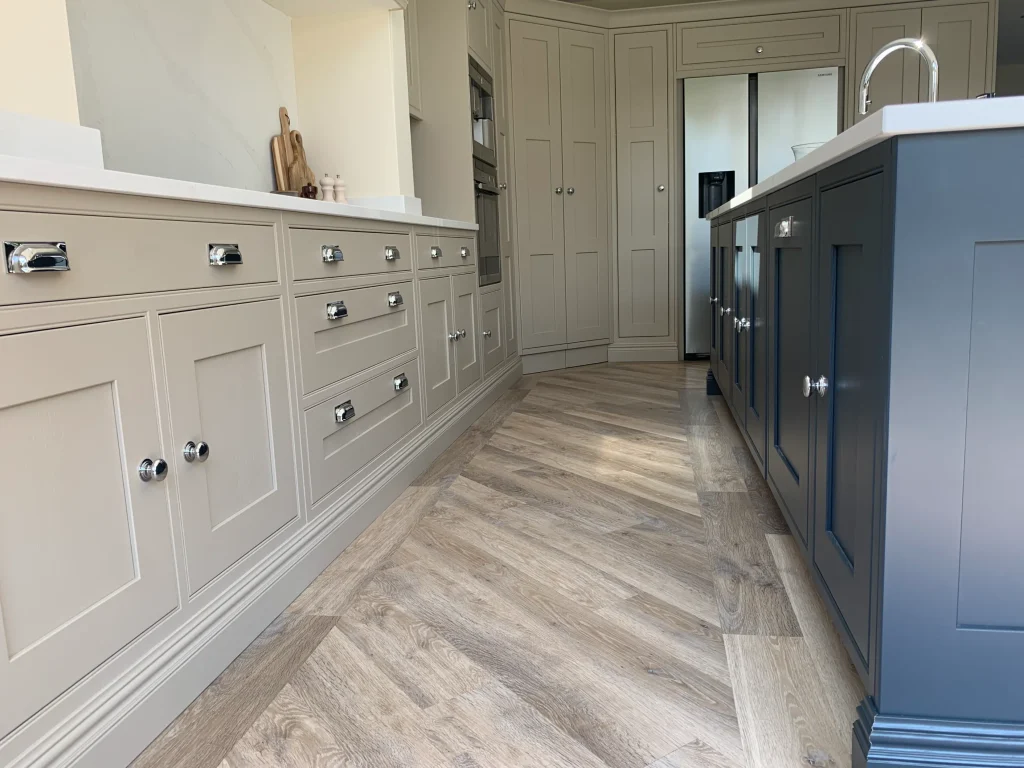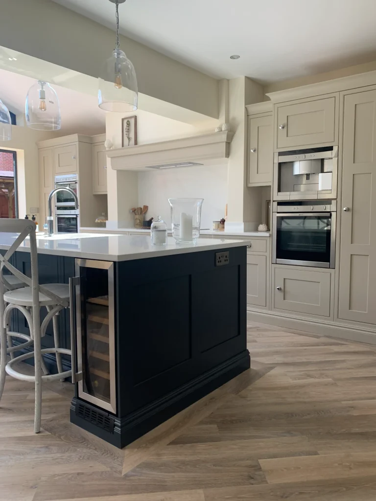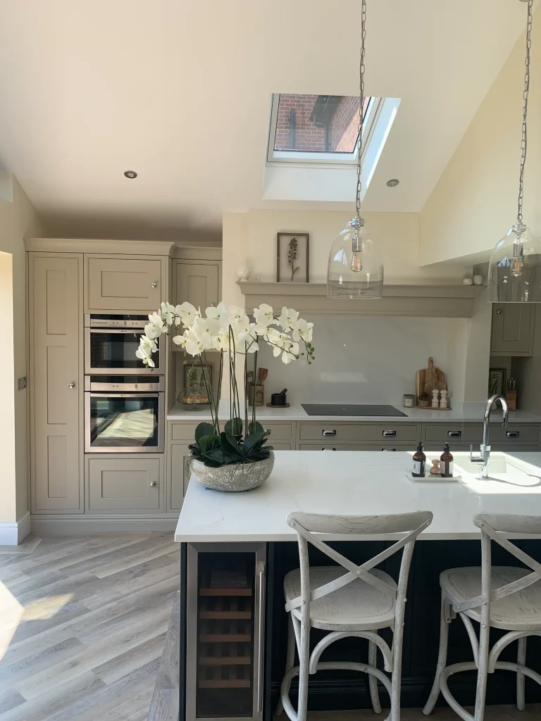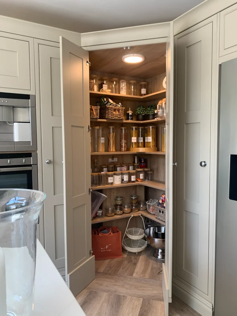 This sophisticated timber in-frame kitchen combine’s traditional craftsmanship with a bespoke hand-painted finish to create a timeless aesthetic tailored for the modern family. The design prioritizes organization, offering an expansive walk-in pantry and a suite of deep-format drawers that provide effortless storage for a busy household. By seamlessly integrating existing high-performance Neff appliances, the space balances professional functionality with a warm, lived-in feel.