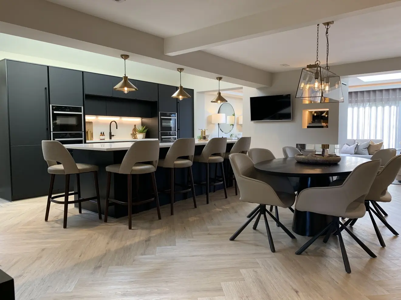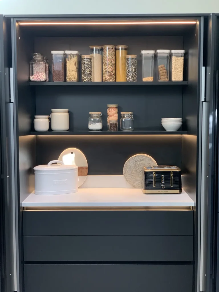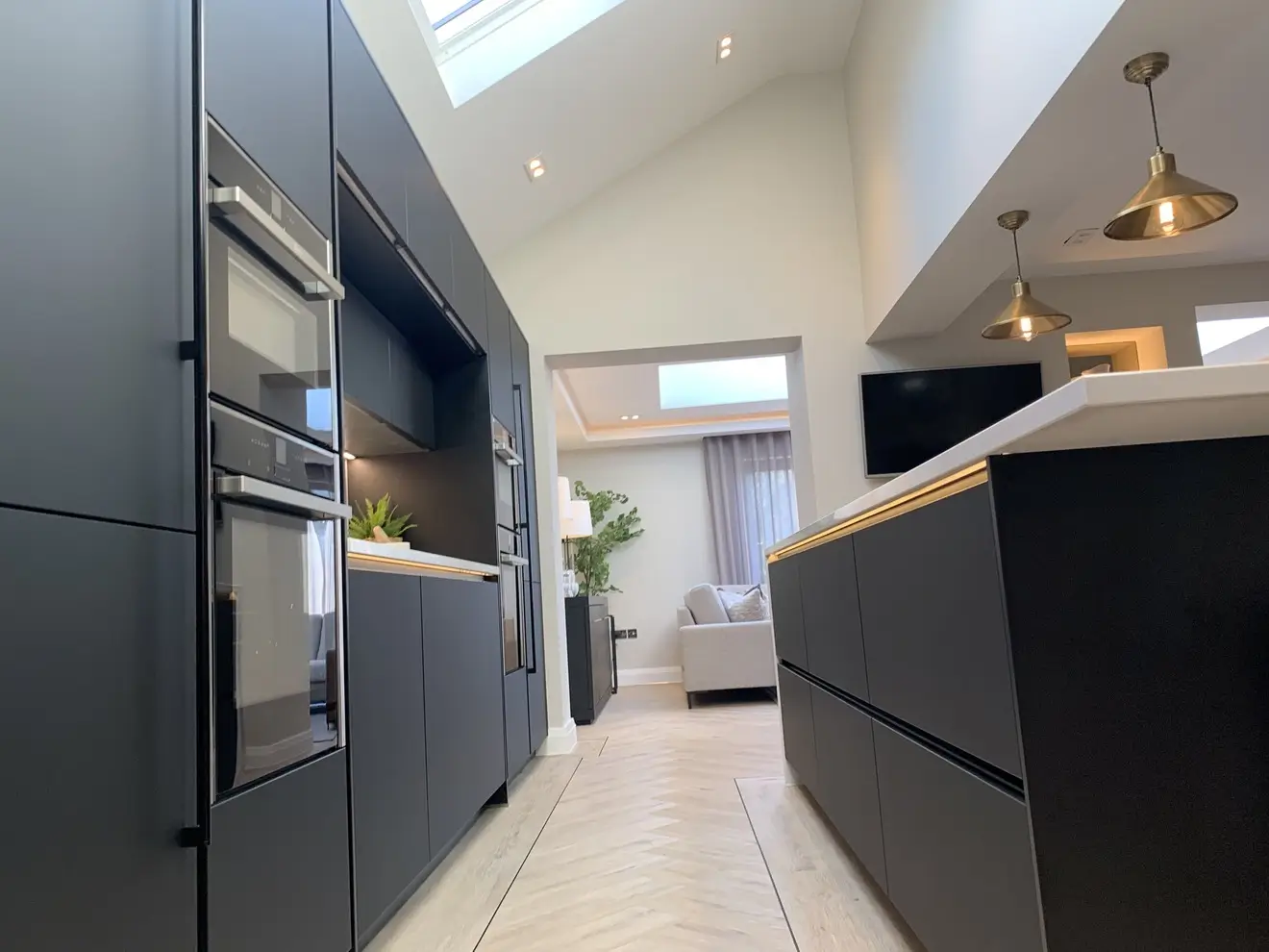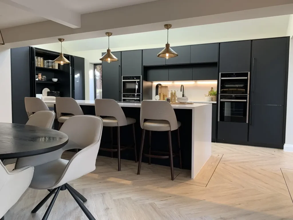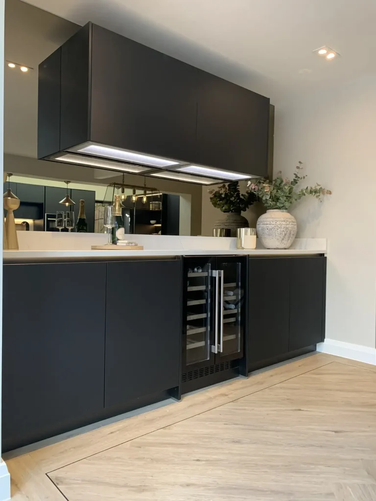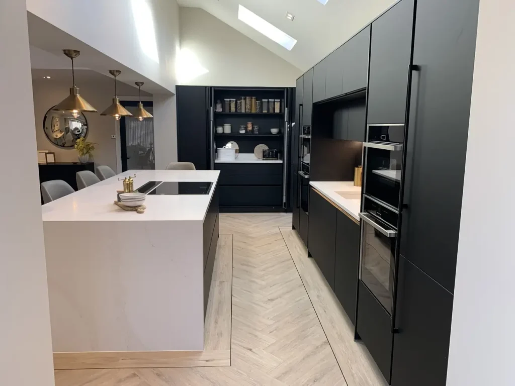 This stunning black matt German Häcker -made kitchen is the definition of modern luxury, designed by us with precision and elegance to create a truly breath taking space. The rich, velvety matt finish exudes sophistication, making a bold yet timeless statement.