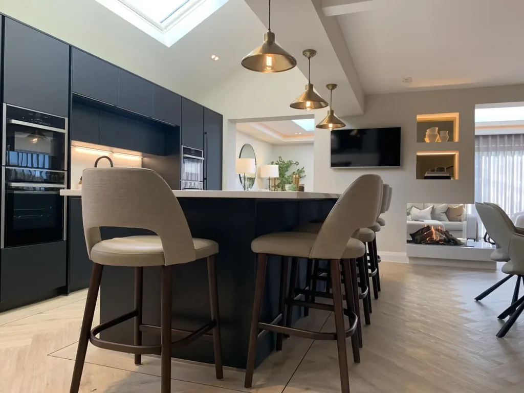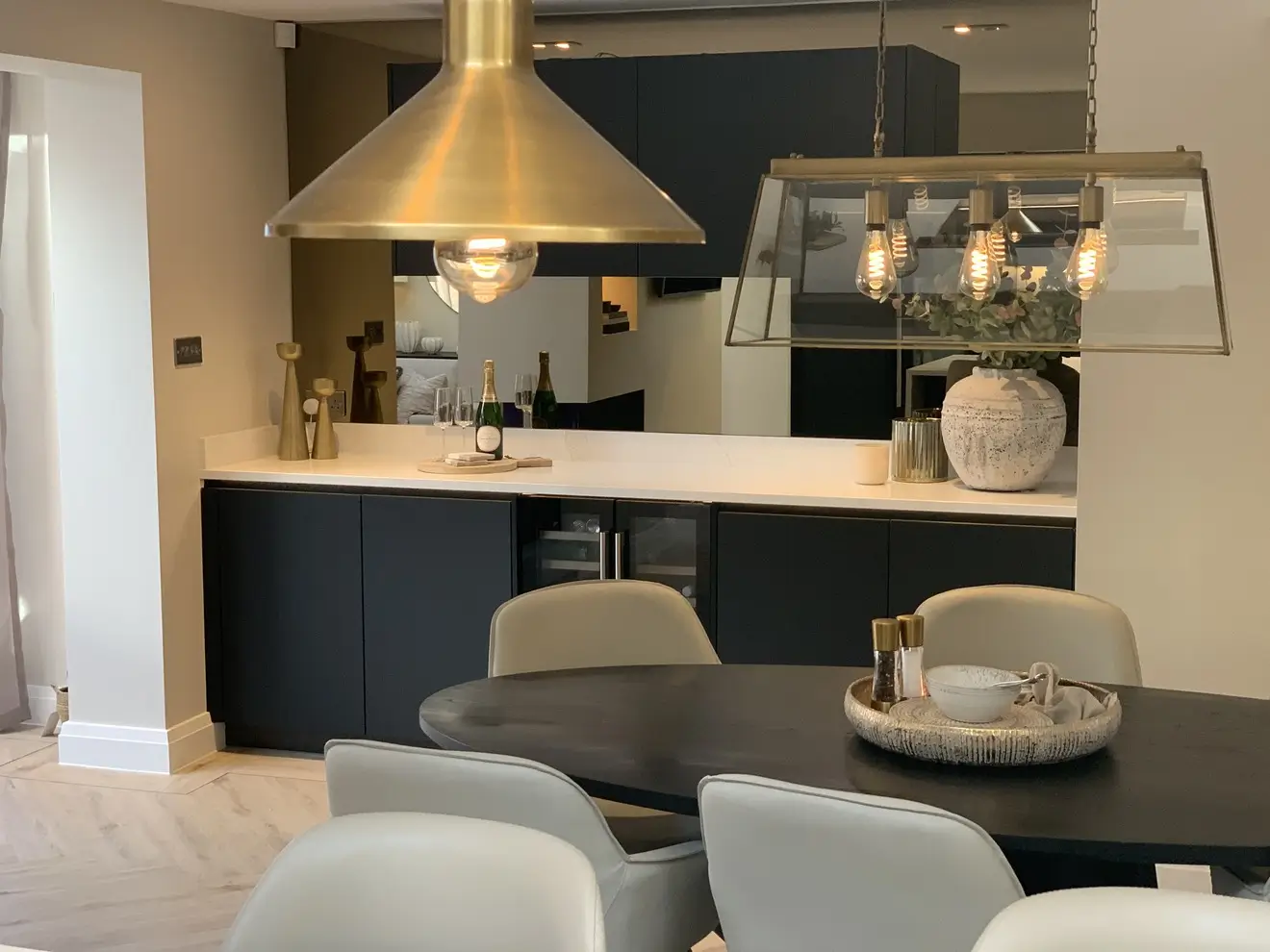 The design incorporates a beautiful bar area, complete with dedicated wine cooler, ensuring the perfect setting for entertaining. This is a space designed for cooking, entertaining and making a statement – this is a kitchen that truly stands out.