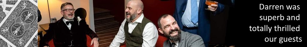Hi Darren. Just wanted to give you my thanks for the fantastic entertainment that you provided at our James Bond night. You were great and everybody was amazed! Would absolutely recommend you as the North West Magician to anybody for their event.